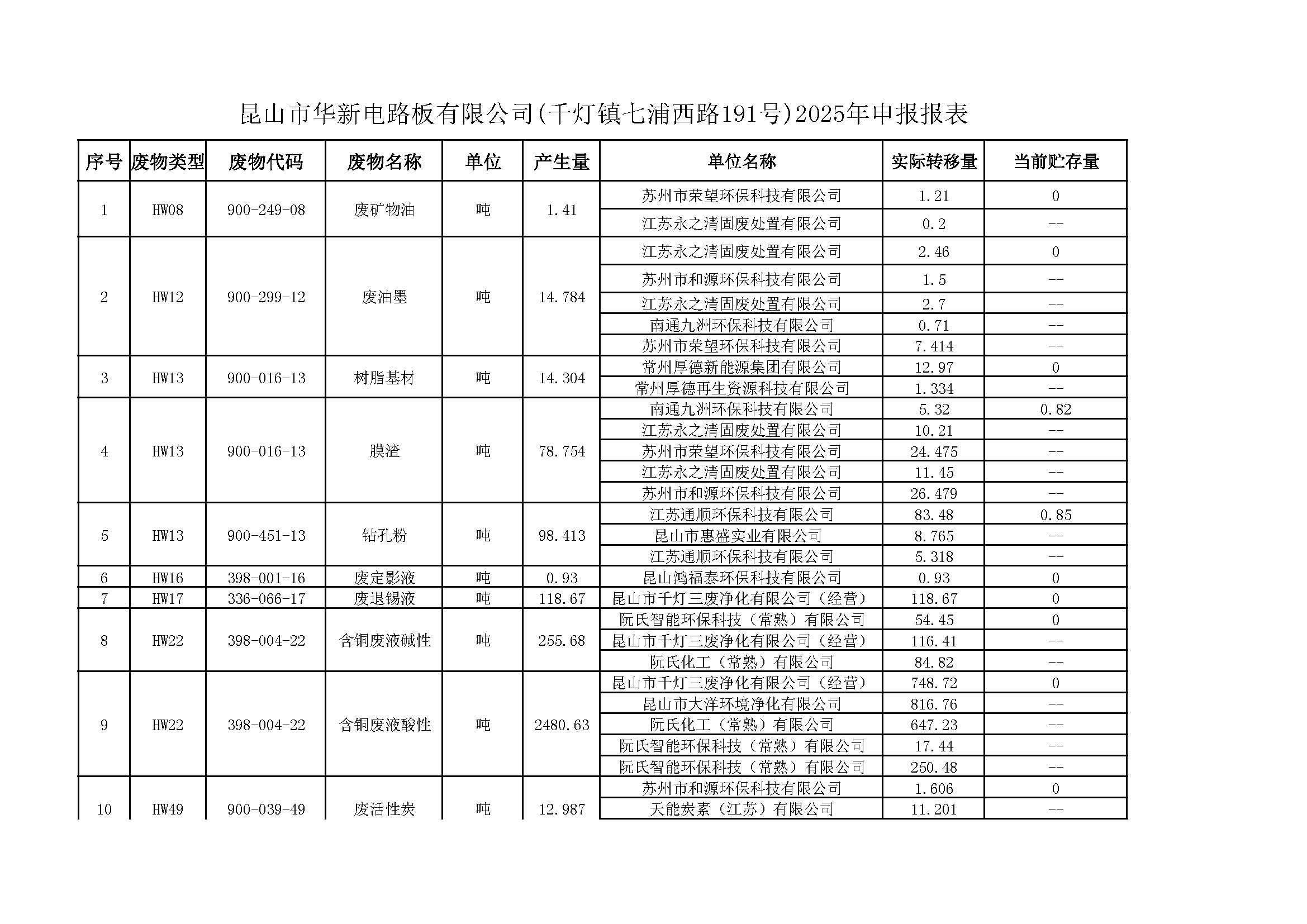 昆山市华新电路板有限公司(千灯镇七浦西路191号)_2025_固废申报公示